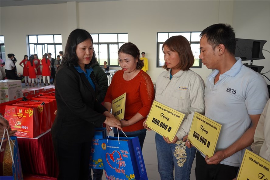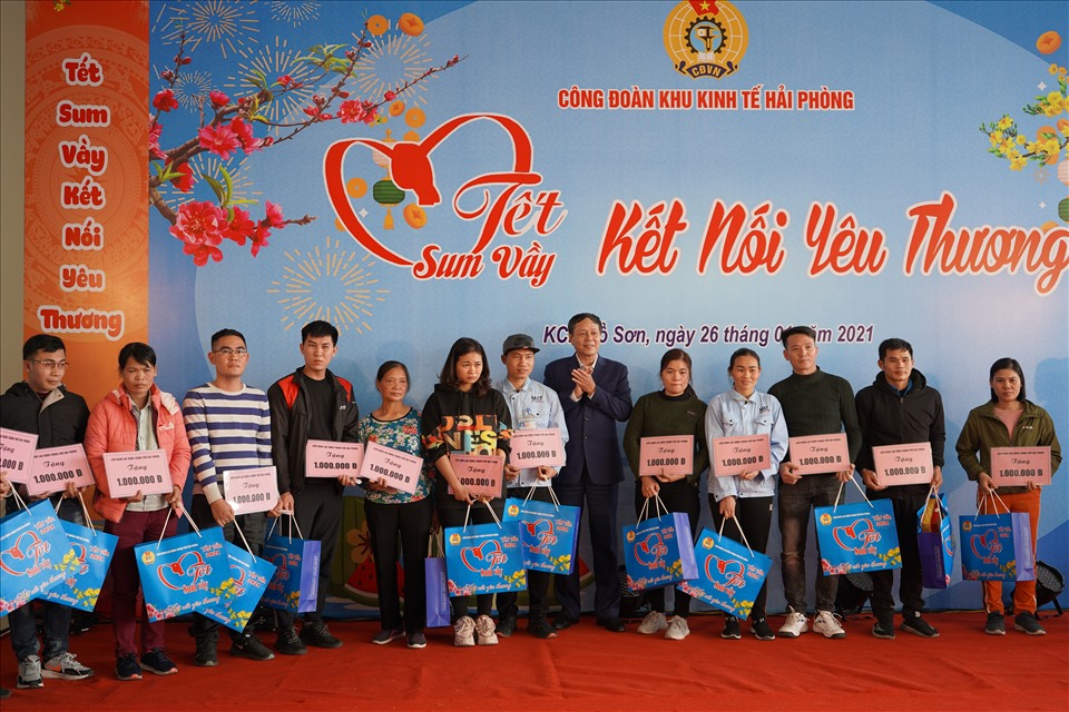 Trong không khí vui tươi, ấm áp của mùa xuân, Công đoàn Khu kinh tế Hải Phòng trao gần 150 suất quà Tết, trợ cấp tặng công nhân lao động hoàn cảnh khó khăn, mắc bệnh hiểm nghèo. "Món quà tuy không có giá trị cao về kinh tế nhưng thể hiện tấm lòng, sự sẻ chia, kết nối yêu thương của các cấp công đoàn Khu kinh tế Hải Phòng, mong muốn mọi người lao động đều có Tết" - bà Đinh Thị Thúy Hà - Chủ tịch Công đoàn Khu kinh tế Hải Phòng cho biết.