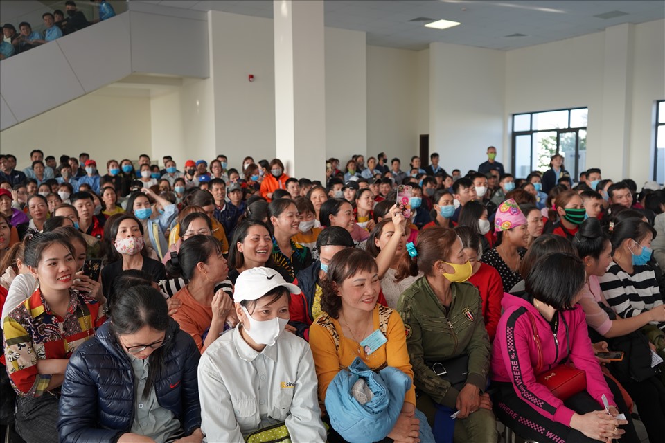 Hàng trăm công nhân lao động Khu công nghiệp Đồ Sơn phấn khởi tham gia chương trình "Tết sum vầy - Kết nối yêu thương" do Công đoàn Khu kinh tế Hải Phòng tổ chức.